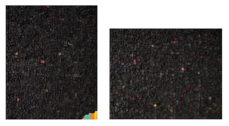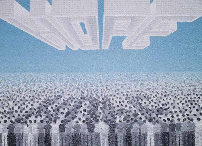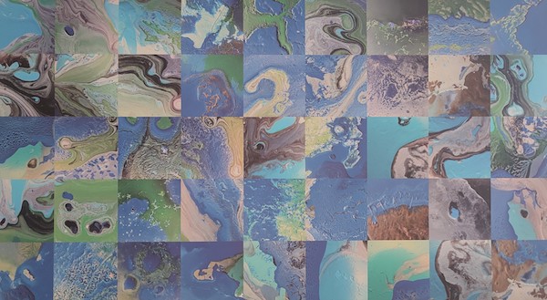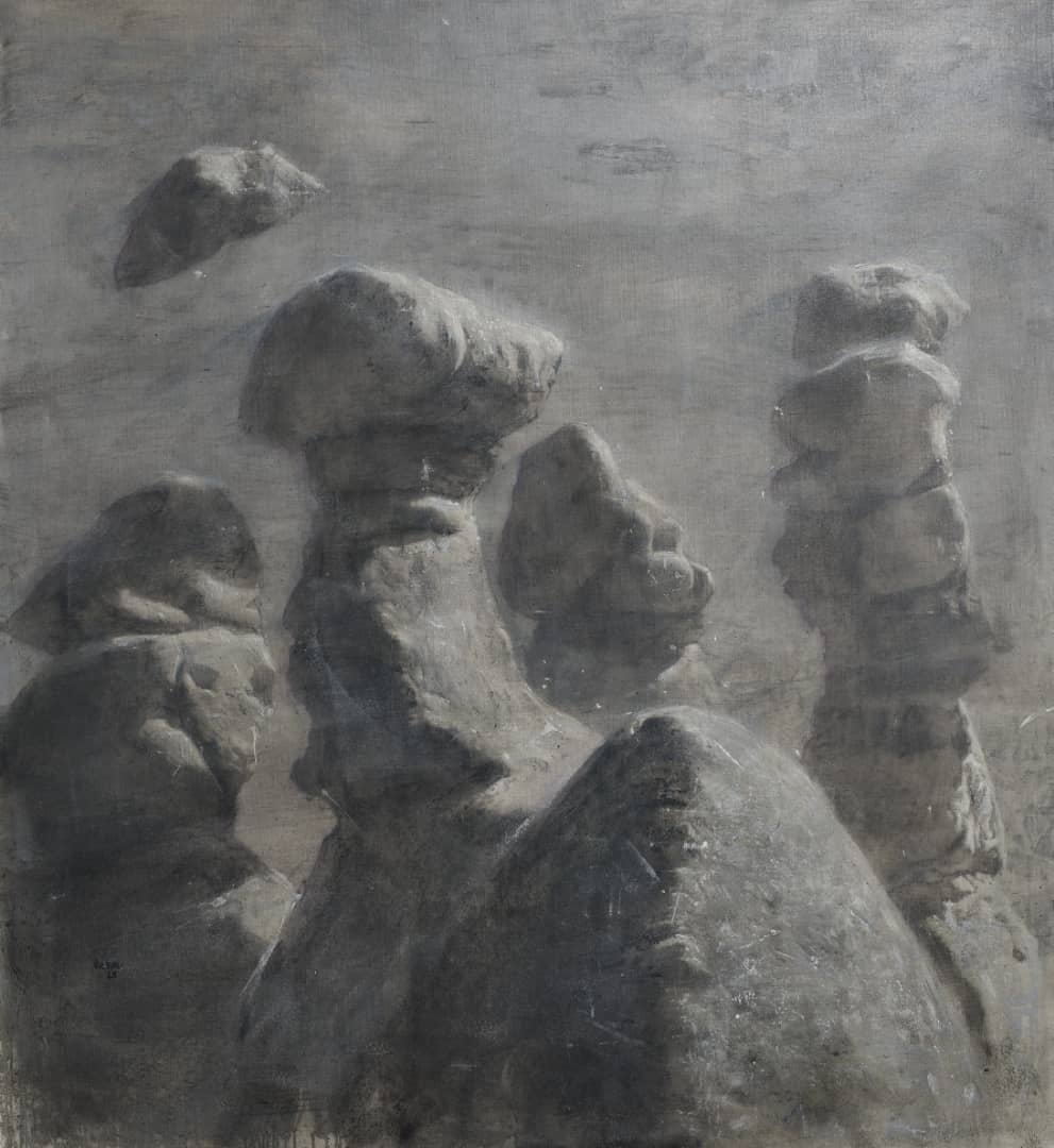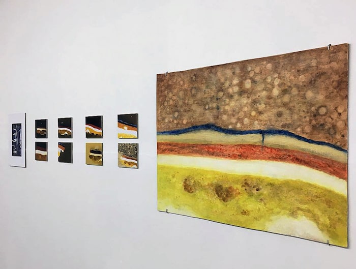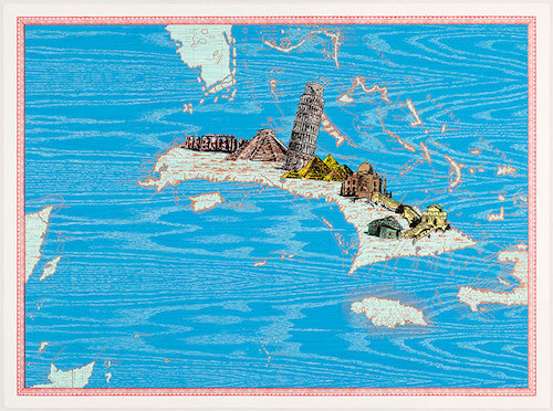 El espacio y el paisaje se abordan desde una carga emocional y se presentan como silenciosos o puntos de aglomeración, o simple excusa para colaboraciones artísticas y la aparición de un centauro cebra. Como mismo la isla es cartografía, mapa, y se debate entre el centro y la periferia como si de libros de los que parten y se quedan se tratase; como testamentos de un renacer del páramo o de unos micromundos delineados con estampados y color. El espacio citadino es devuelto desde la huella de los mosaicos y no dejan de estar presentes las metáforas del campo.